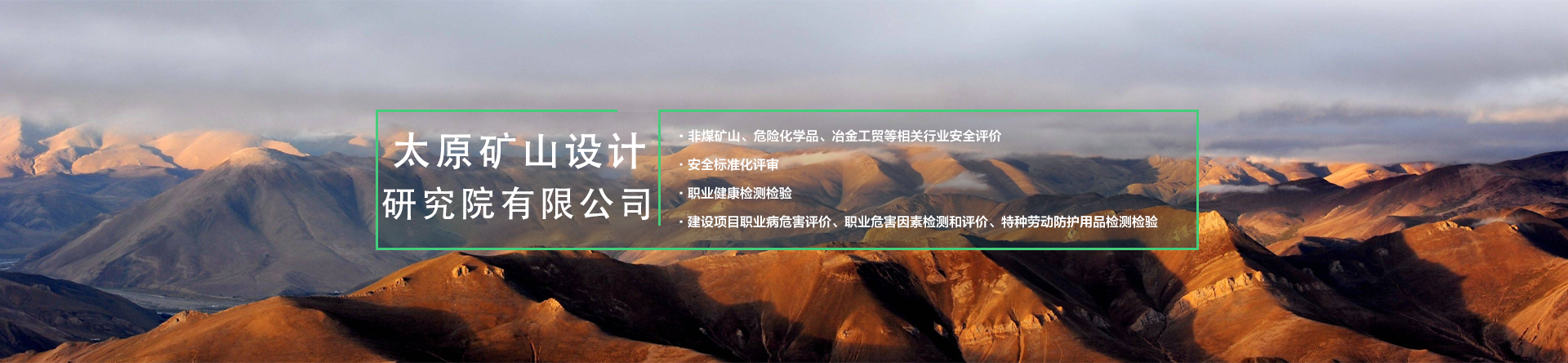 公司主要從事礦山采選尾工程設計、智能化及自動化礦山、建設綠色礦山、工程技術咨詢、規(guī)劃設計管理、施工勞務分包、土地規(guī)劃、地質災害治理服務、安全生產技術服務、軟件開發(fā)及測繪服務;煤礦、非煤礦山設計;煤礦、非煤礦山、危險化學品安全評價(業(yè)務范圍:煤炭開采業(yè);金屬、非金屬及其他礦采選業(yè);石油加工業(yè),化學原料、化學品及醫(yī)藥制造業(yè));非煤礦山、冶金等工商貿企業(yè)、危險化學品從業(yè)單位安全生產標準化評審;公共場所衛(wèi)生、生活飲用水、公共場所集中中央空調通風系統(tǒng)的檢驗、檢測、評價;職業(yè)健康檢測檢驗;建設項目職業(yè)病危害評價、職業(yè)危害因素檢測與評價;安責險技術服務;業(yè)務培訓等工作。